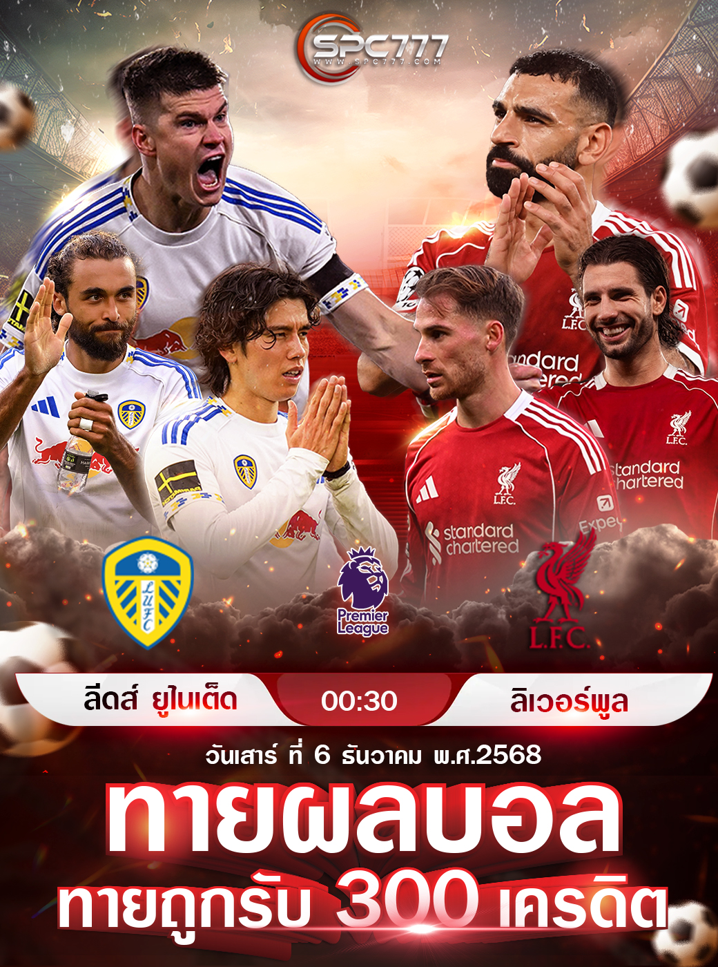 ร่วมสนุกทาย ผลบอลว่าทีมไหน จะยิงประตูเข้าก่อน และ บอลคู่นี้ จบที่สกอร์รวมเท่าไร หากทายถูกรับเครดิตฟรีไปเลย 300 เครดิต ทางระบบจะทำการสุ่มจัดเท่านั้น ลูกค้าสามารถเข้าเช็คคู่บอล ที่ ทางระบบจัดขึ้นได้ที่ www.SPC777.com ในหน้ากิจกรรม ได้เรื่อยๆค่ะ
